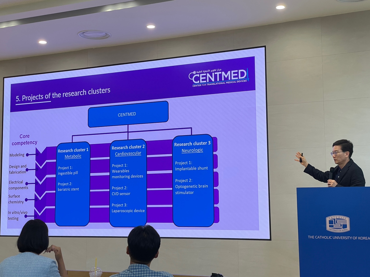 2025 년 8월 11일, 가톨릭대학교 성심교정 도서관 2층 컨퍼런스룸에서 가톨릭대학교 와 New York University Abu Dhabi(NYUAD) Center for Smart Engineering Materials(CENTMED)가 “Bridging Ideas: Emerging Frontiers in Translational Medical Devices”라는 제목으로 국제 공동 산학연 워크숍을 가졌습니다.